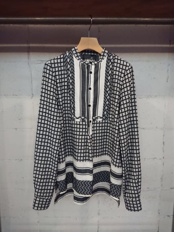 モノトーンのプルオーバーシャツは織の異なる様々な柄をMIXした立体感のある一枚!!!