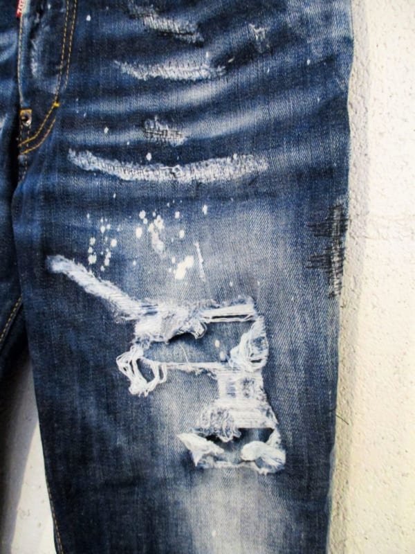 ムラ感のある色落ちや強く擦ったかのように表現したダメージ、丁寧なリペア、ホワイトペイントなど手の込んだ加工でワイルドな見た目に仕上げられたヴィンテージ感たっぷりな1本!!