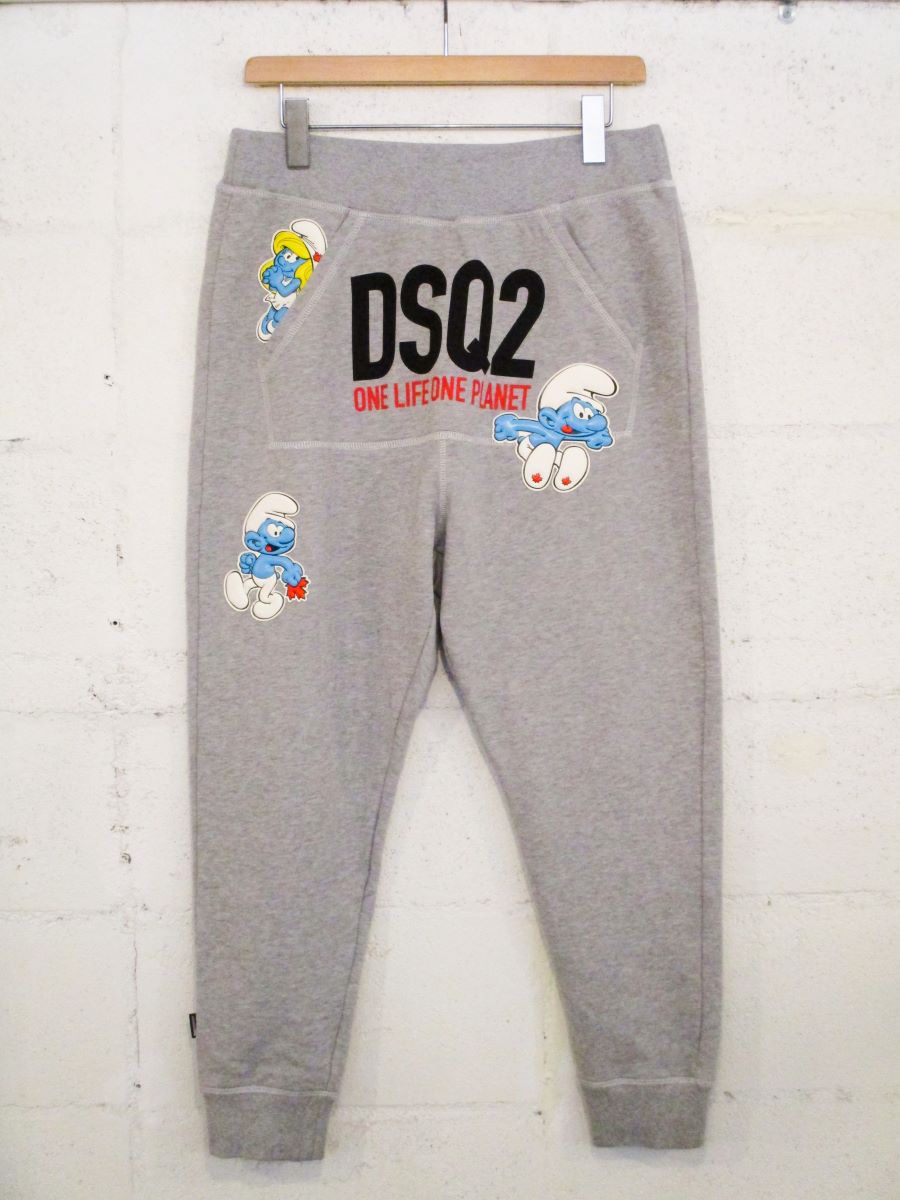 立体的なスマーフたちや、フロントポケット部分に施された大胆なロゴがインパクトを放つスウェットパンツ!!!
