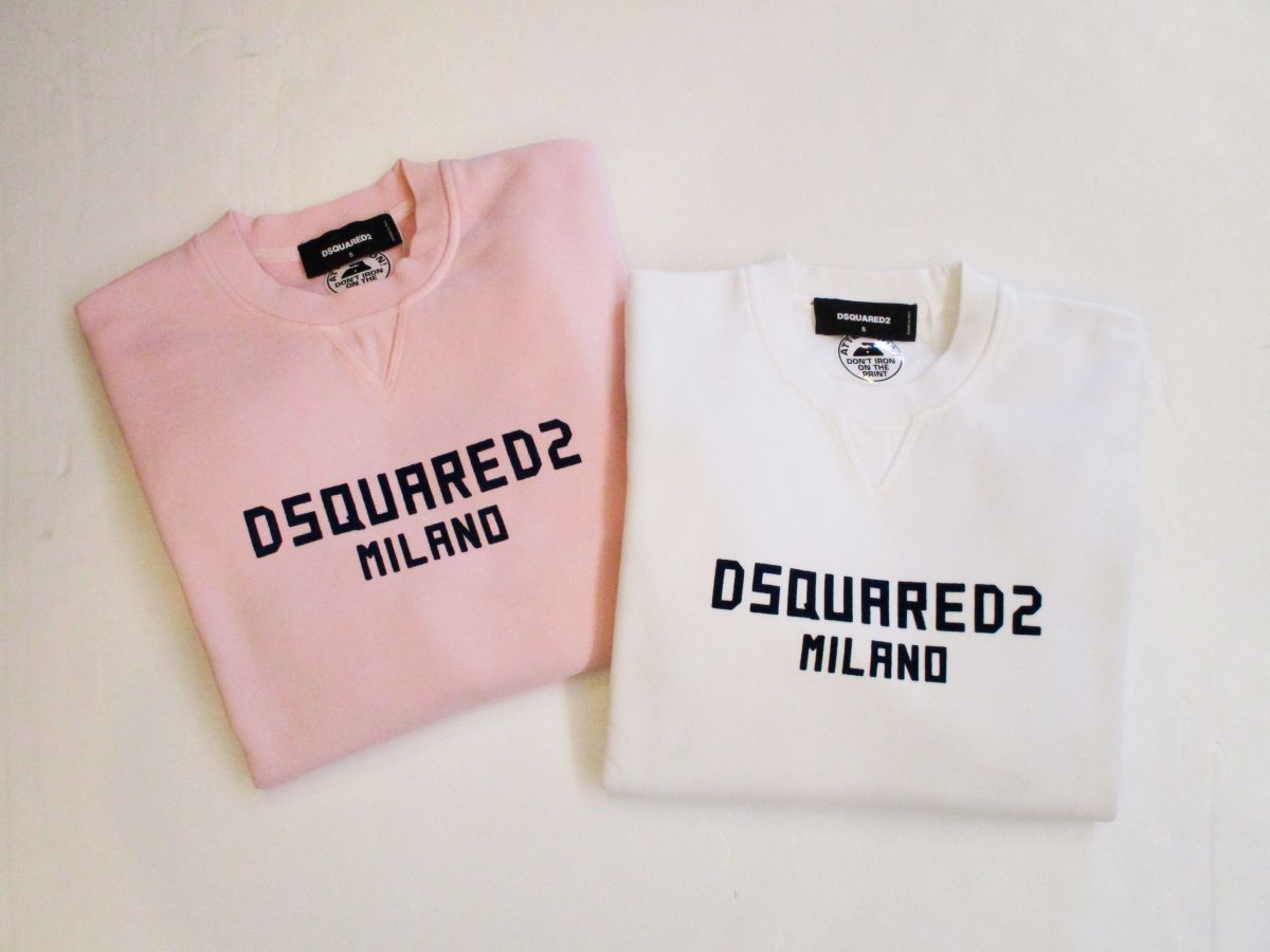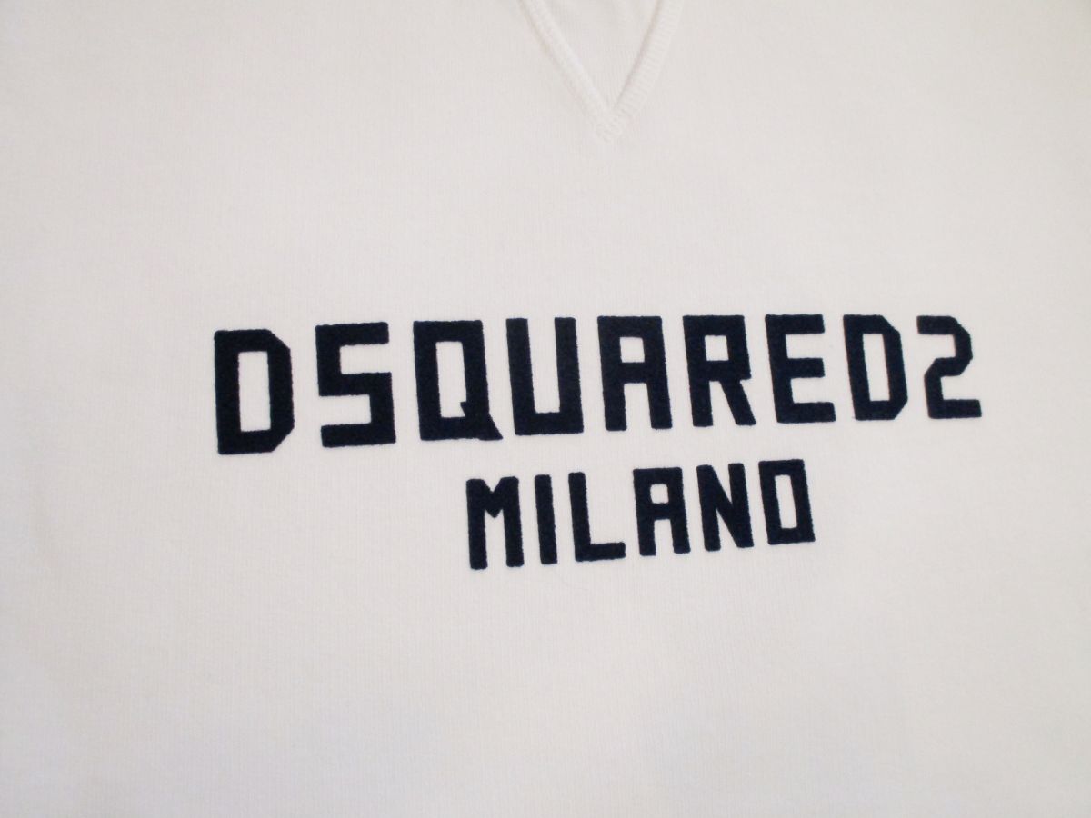 フロントには「DSQUARED2 MILANO」のロゴプリントが大胆に施され、シンプルなデザインに確かな存在感を加えています。クラシックな雰囲気漂う、クルーネックとVガゼットのディテールもNICE!!