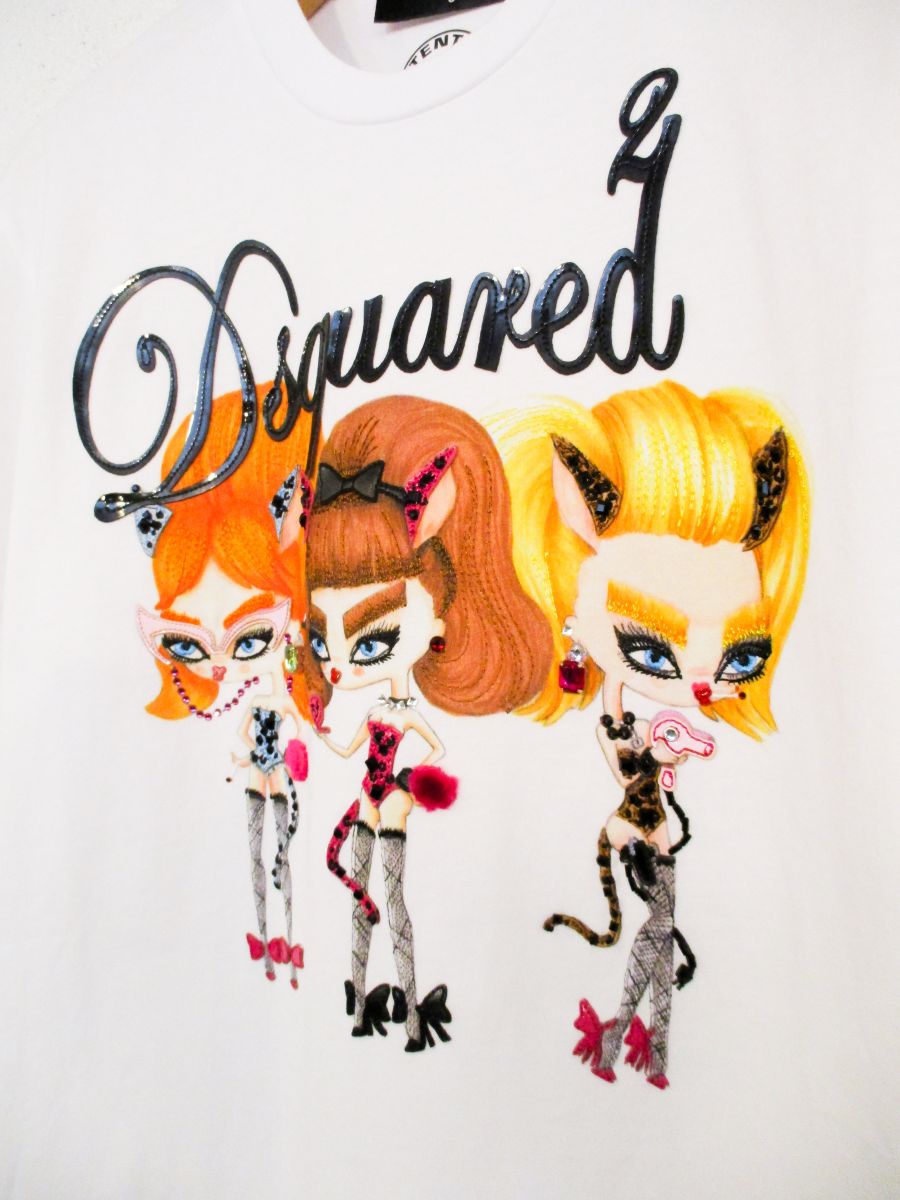 “DSQUARED2 BABES”の大胆なグラフィックが視線を惹きつけるクルーネックTシャツ!!!