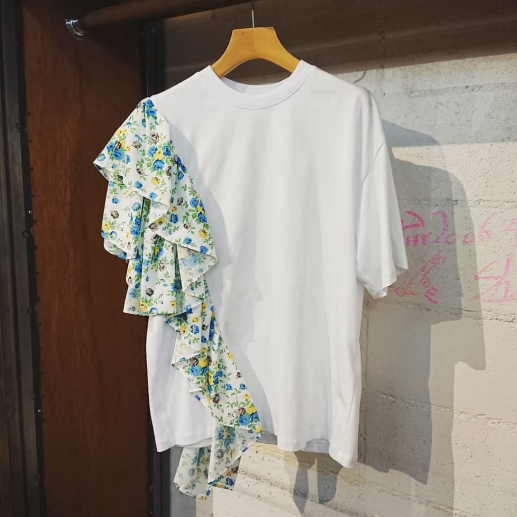 お花柄のプリントがかわいい、アシンメトリーなTシャツです‼