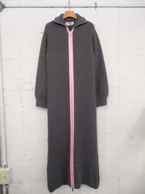 フロントに施されたコントラストカラーのメタルジップが特徴的なウールブレンドのロングニットワンピース!!!