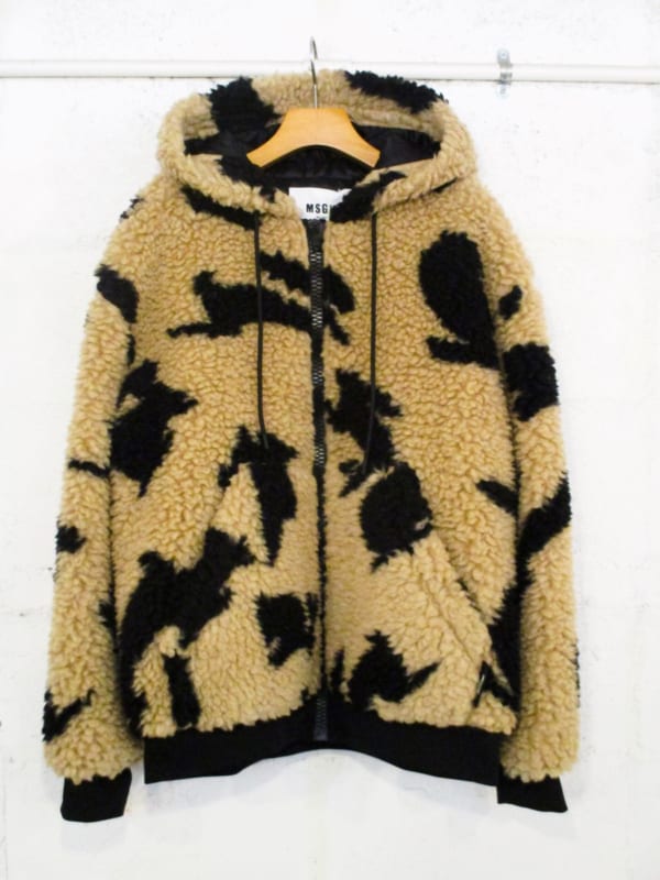 ふわっと軽くて暖かいボア素材に、全面に散りばめられたブラックのラビット柄!!MSGMらしいユーモアとグラフィックセンスが光る、テディ風ジップジャケット!!!